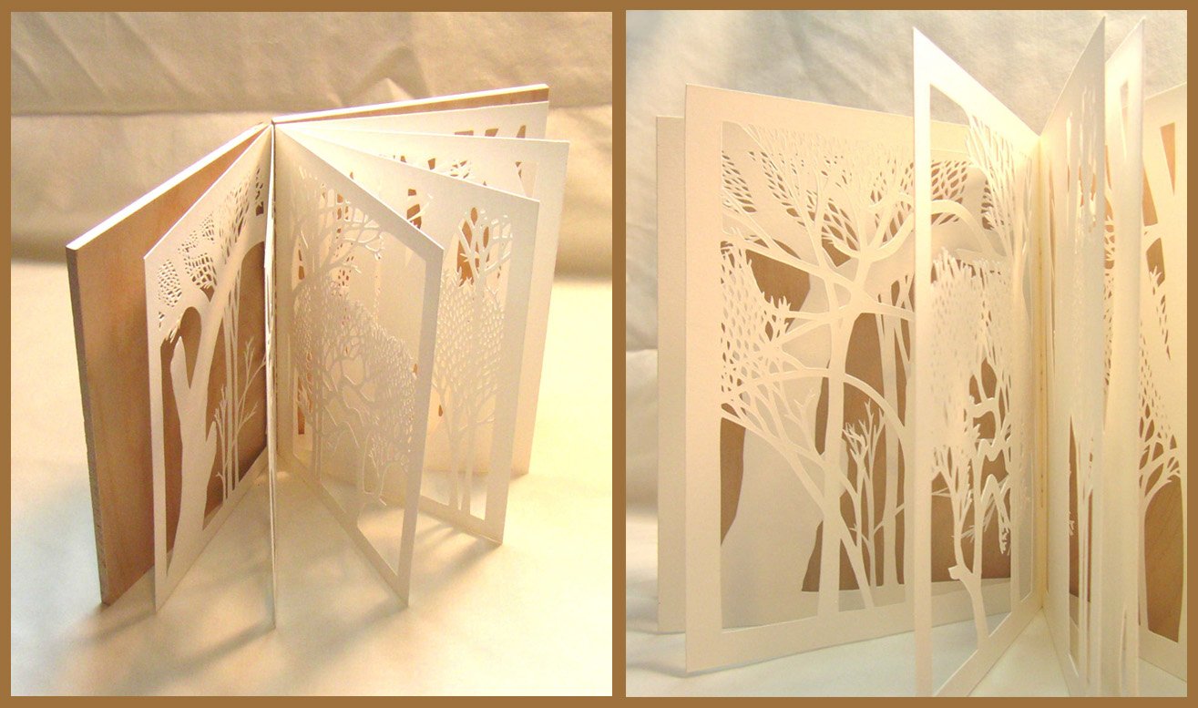 Arbouricon I is a one of a kind artist book constructed from meticulously hand cut paper and oiled wooden book covers.