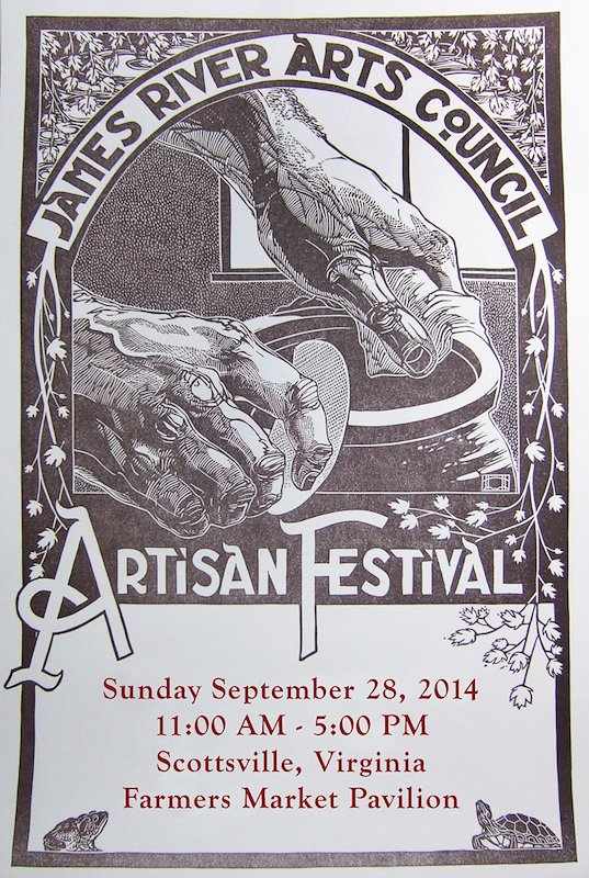 This was a large linoleum block carved for the James River Artisan Festival to make posters.