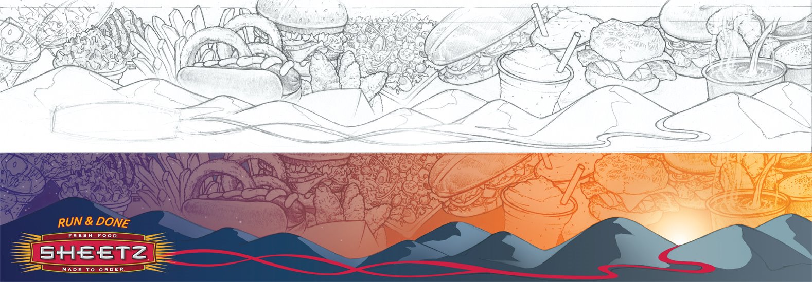 My design won a regional finalist spot in the Sheetz Fleet Design Competion of 2018. It was hard not to get hungry working on this piece!
