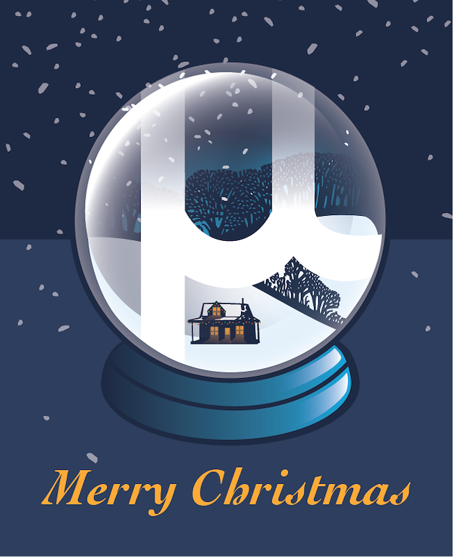 Here is the Mikro Systems Christmas card design I did for their 2021 holiday. The company was in the process of transitioning as it was bought out by another corporation. The new corporation's branding was a navy blue. The color lent itself to a snowy silent night scene that was very cozy. The micron emblem in the globe glass is actually the company's original logo and I left it there for the original team's appreciation.